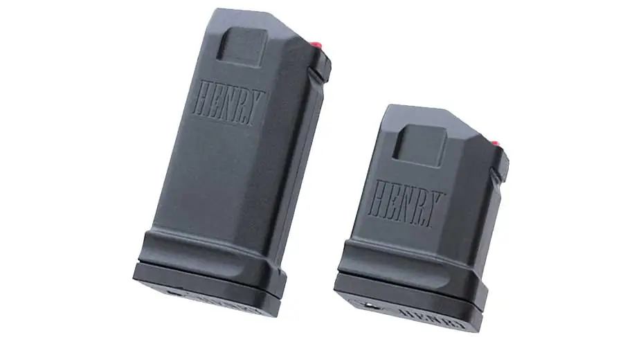 M-LOK® slots on forearm. Sling swivel studs. 5-round and 10-round Henry magazines included. Glock® magazine well adapter included (Glock® magazines not included). Ambidextrous bolt handle. Additional Henry magazines and adapters available separately.