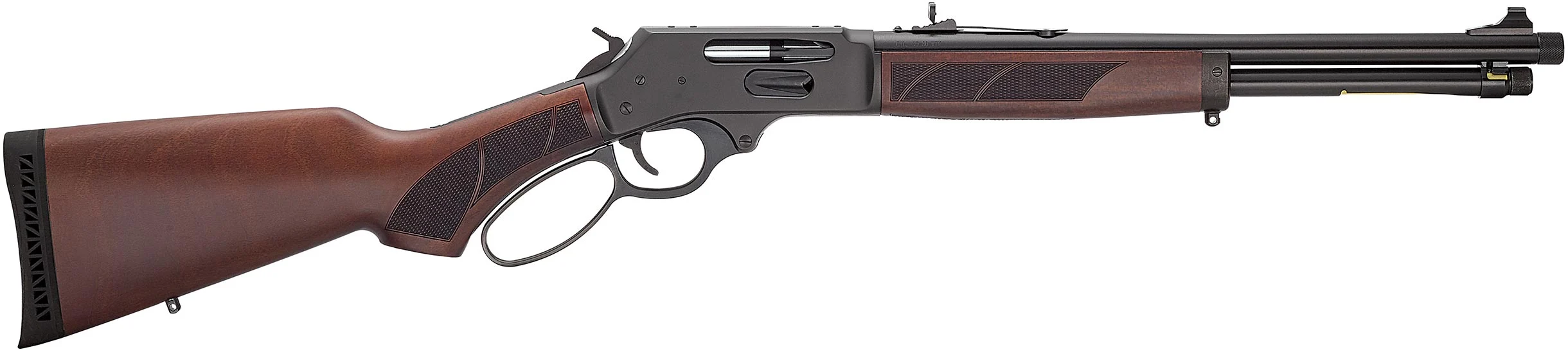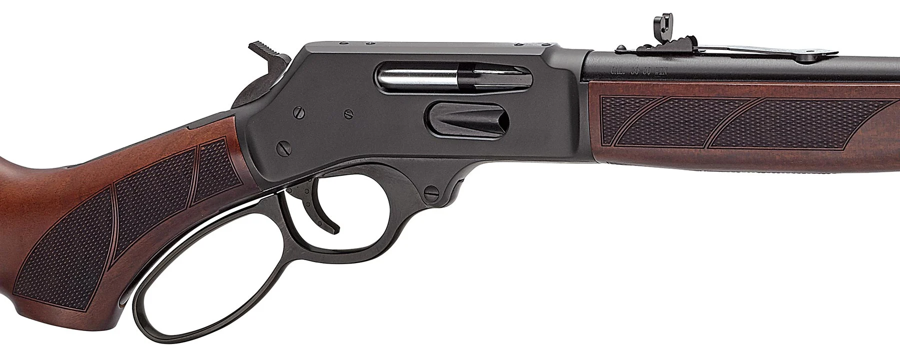 Like its Provider counterpart, the H9 Protector Carbine wears a blued steel finish and genuine American walnut, giving it the same timeless appearance as traditional lever actions. The checkered pistol-grip stock offers improved control and a more secure hold, while the ventilated rubber recoil pad adds comfort during extended use.