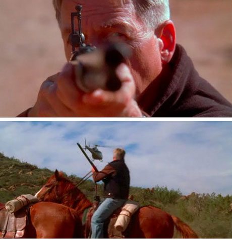 The episode is called “South By Southwest”… “The death of a NCIS agent leads Gibbs and Tony into the desert to locate a woman who holds the answer to the mystery”. The exciting final scene features a wounded marshall instructing Harmon to “Get the Henry!”. Which he proceeds to use to down the helicopter of the “bad guy”!