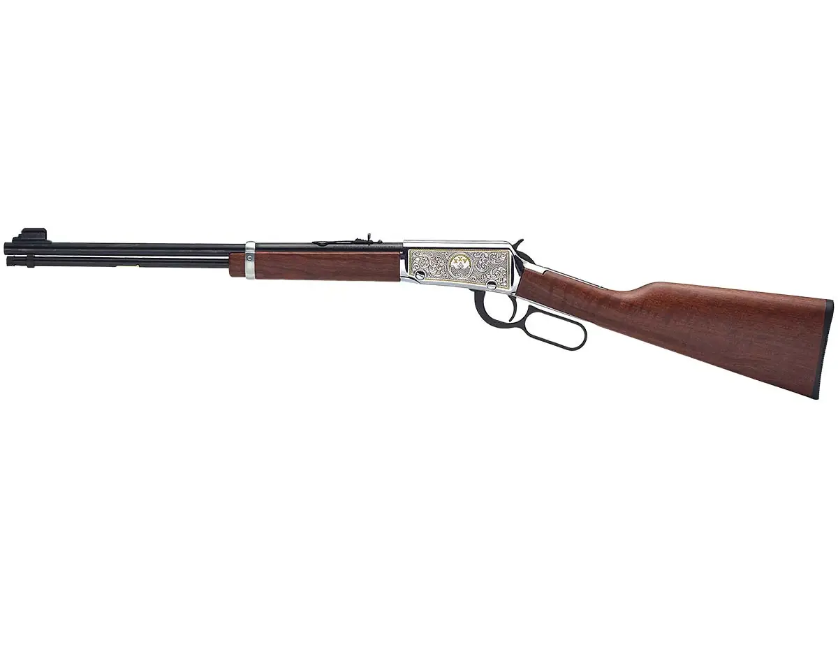 It wouldn’t be an homage to the Classic Lever Action .22 without genuine American walnut furniture, so for this edition, we selected pieces with natural figuring that’s every bit as striking as the embellished receiver cover. To make sure it shoots as good as it looks, the rifle features an 18.5” blued steel barrel, adjustable sights, and the same exceptionally slick action that’s been winning over plinkers, hunters, and range goers for twenty-five years.